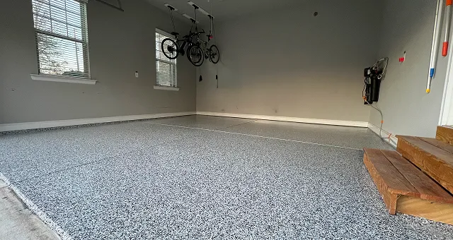 We use only commercial-grade coating systems - no cheap DIY kits here. Our multi-layer approach with epoxy or polyurea bases and protective polyaspartic topcoats ensures maximum durability and beauty.